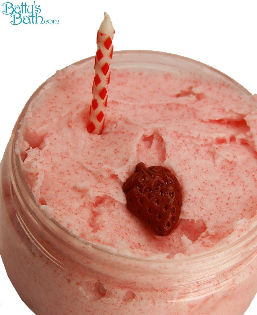 Get your one Strawberry Birthday Cake Body Polish from Batty's Bath online shop.